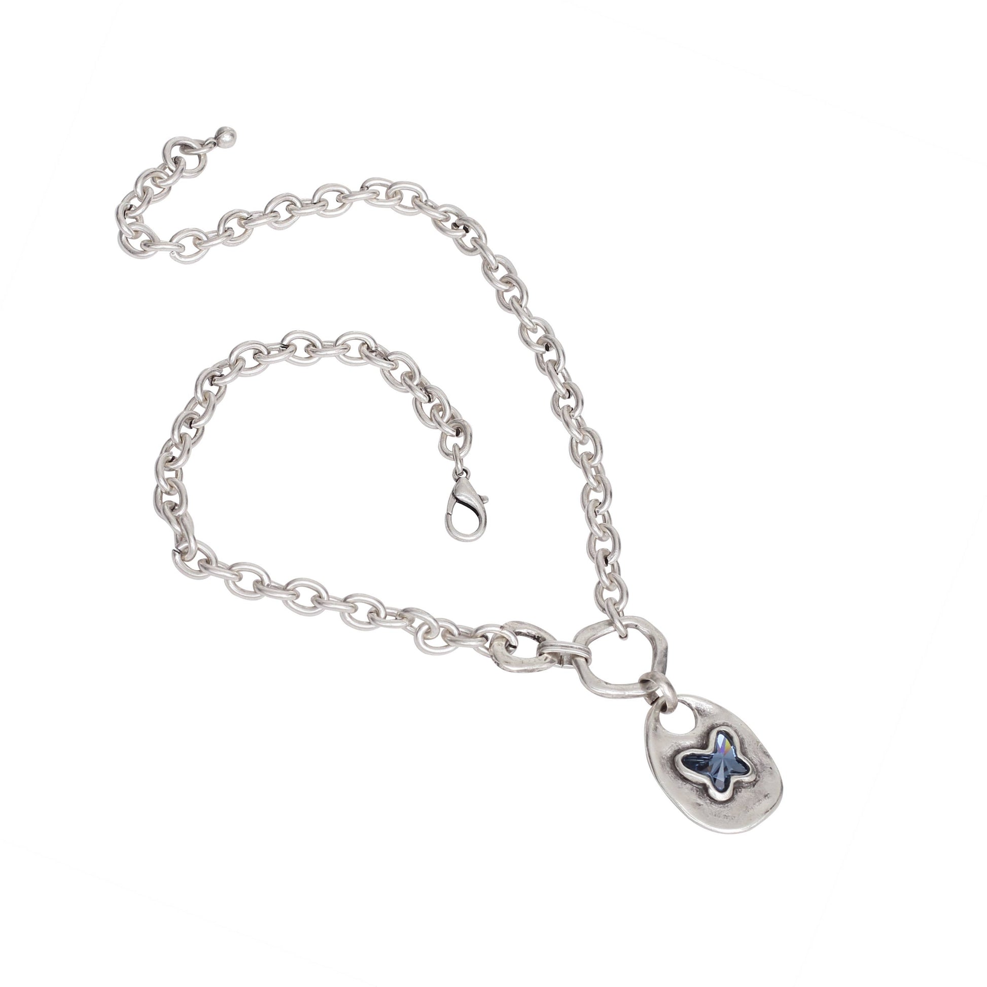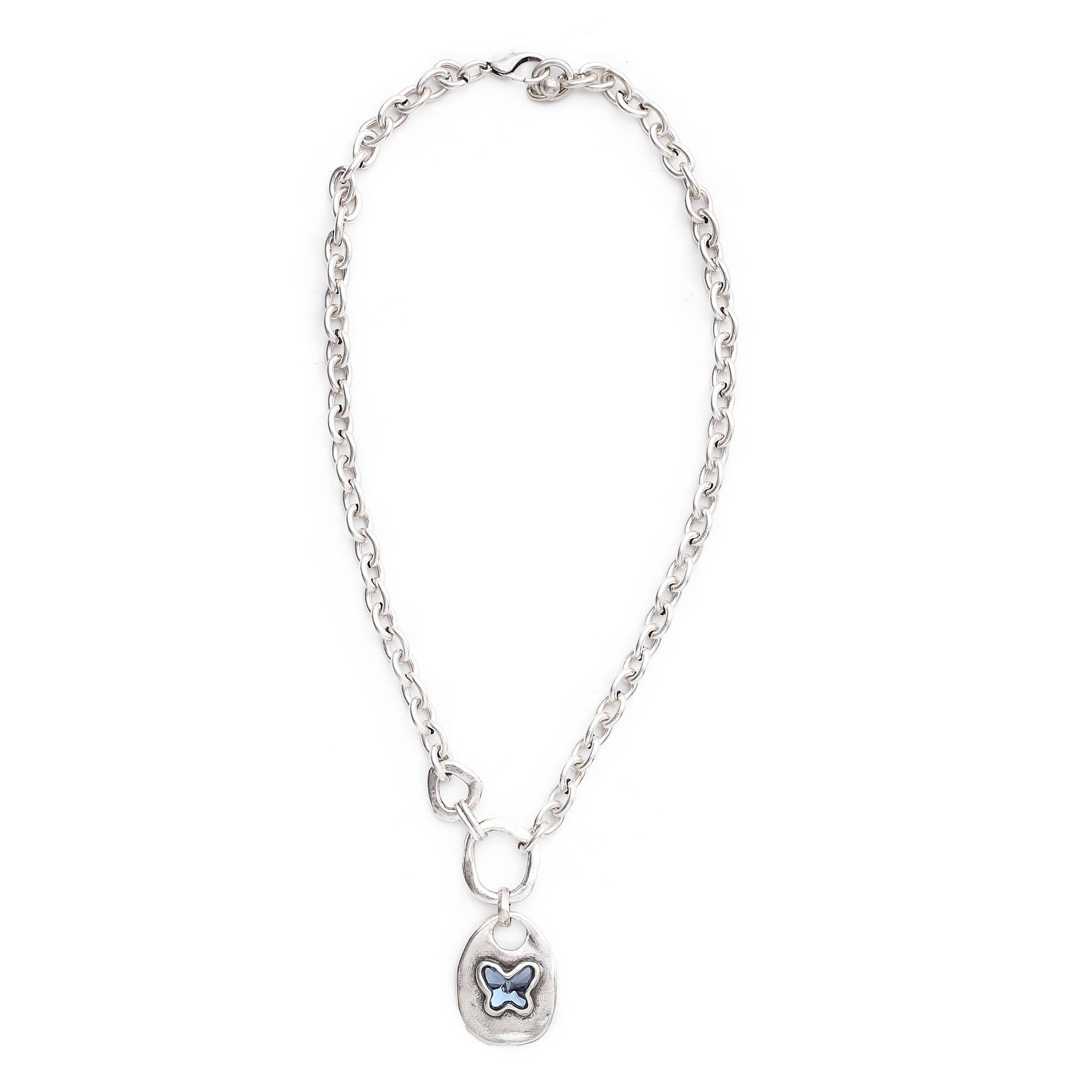 Handmade ButterFly Blue Crystal Pewter Necklace - 3979