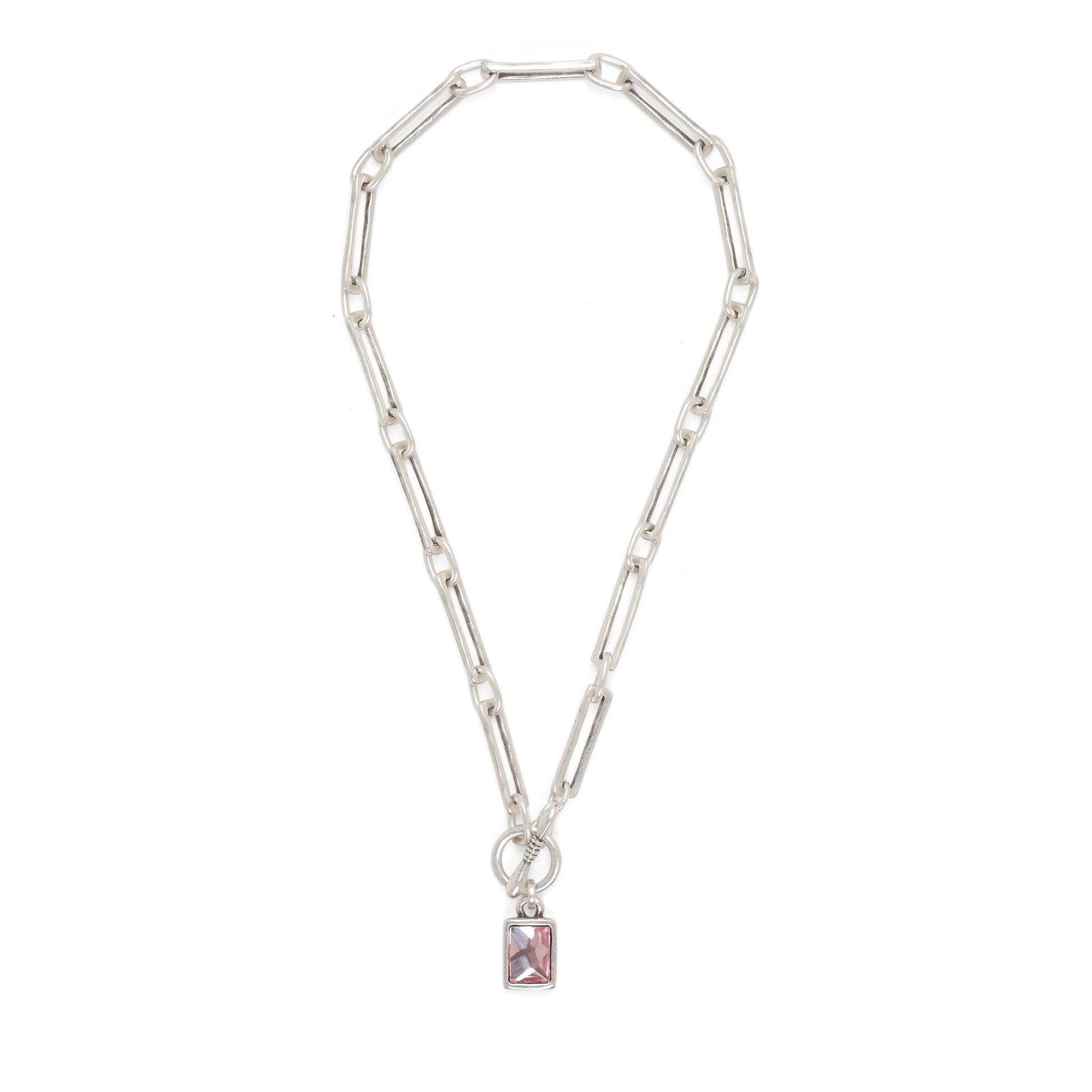 Handmade Crystal Pewter Necklace - 3816 Pink