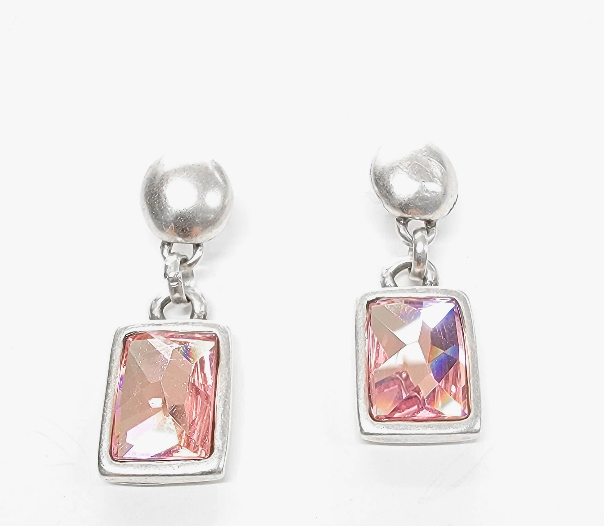 Handmade Pink Crystal Pewter Earrings - 1816 Pink