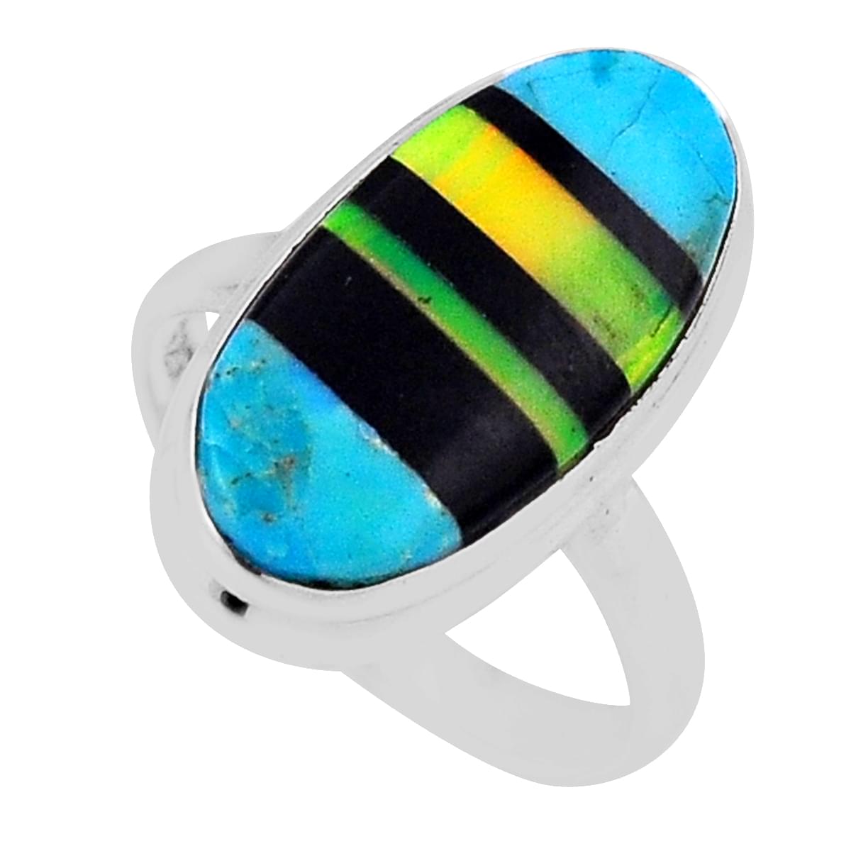 solitaire turquoise volcano aurora opal onyx silver ring size 7