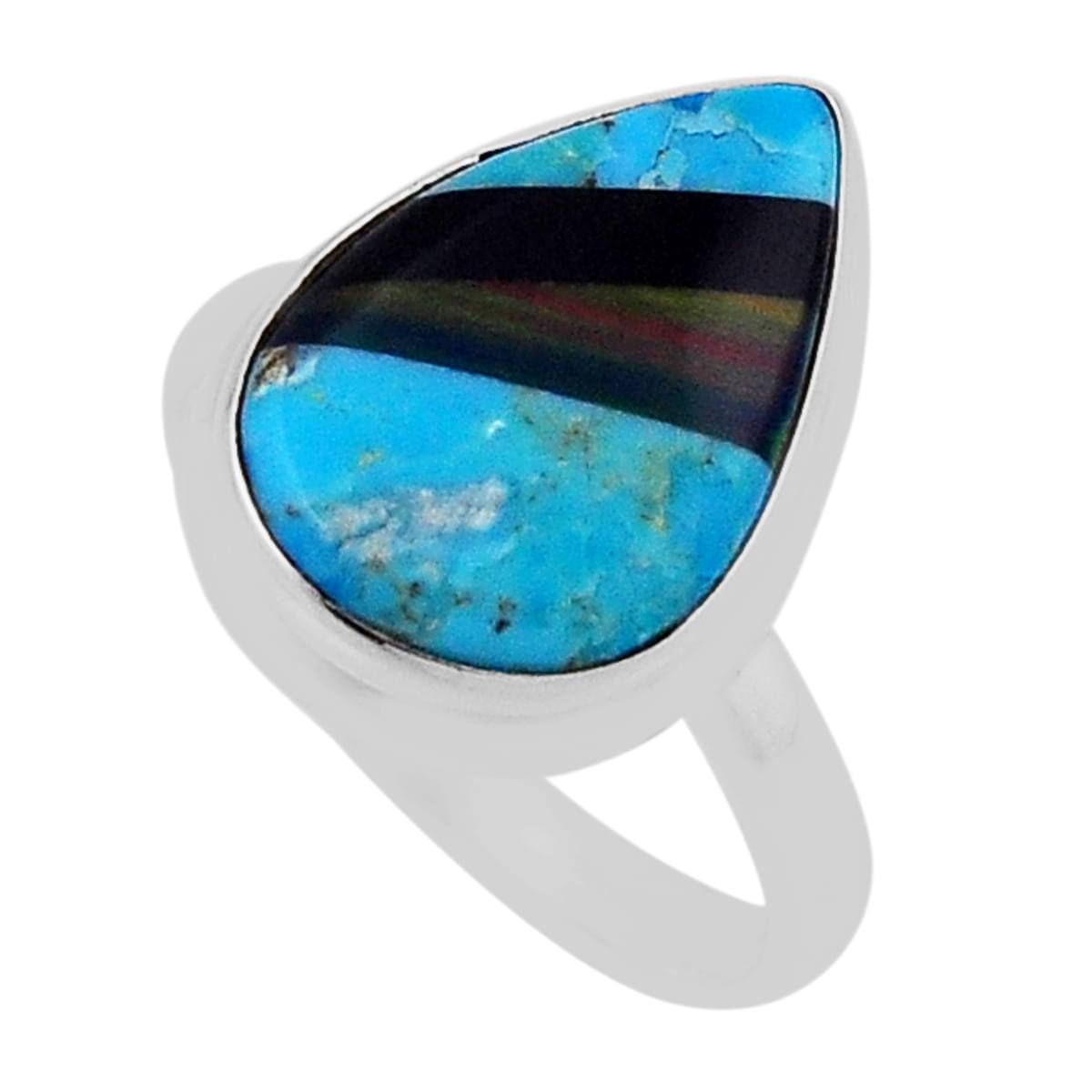 solitaire turquoise volcano aurora opal onyx silver ring size 8