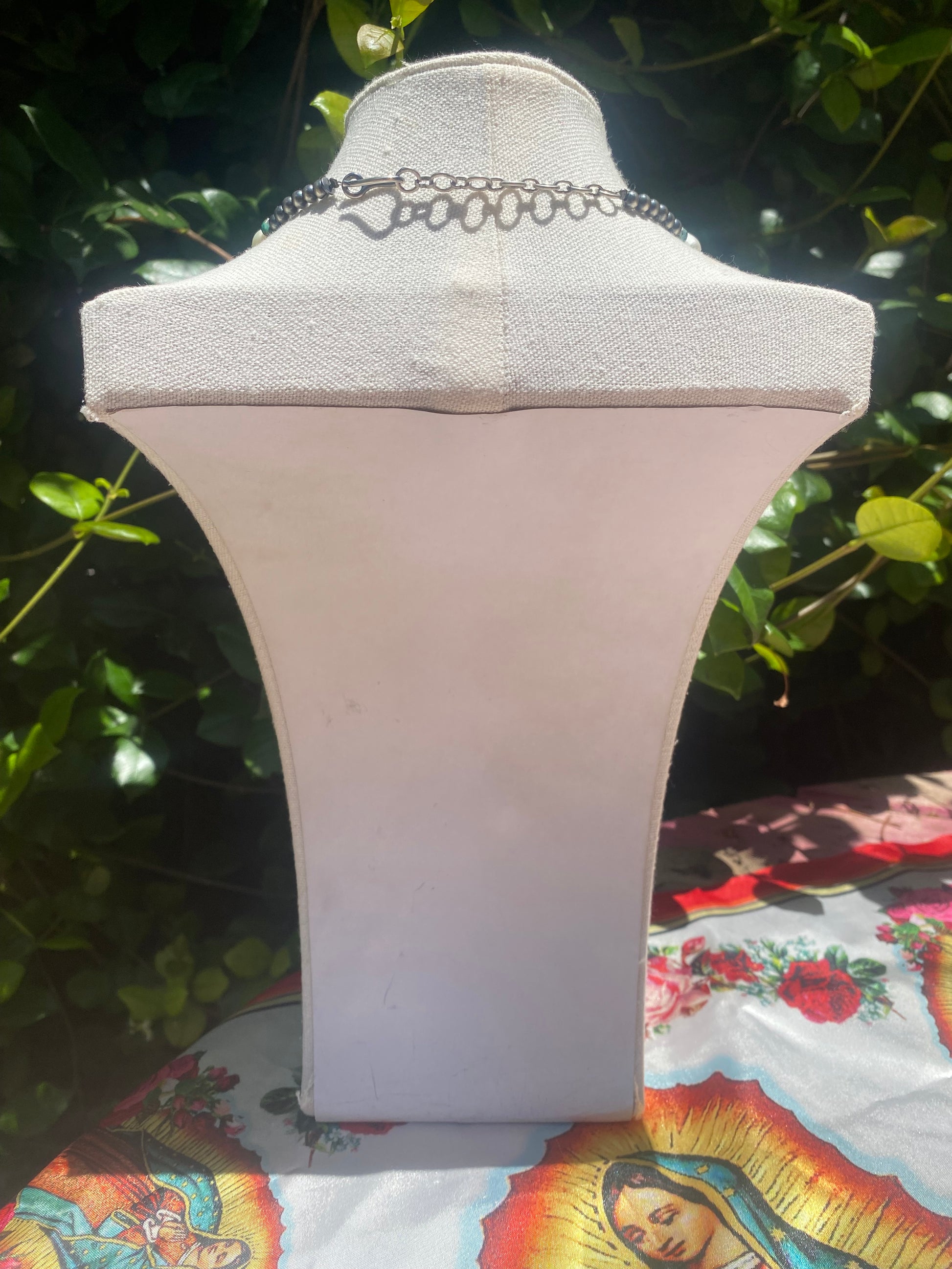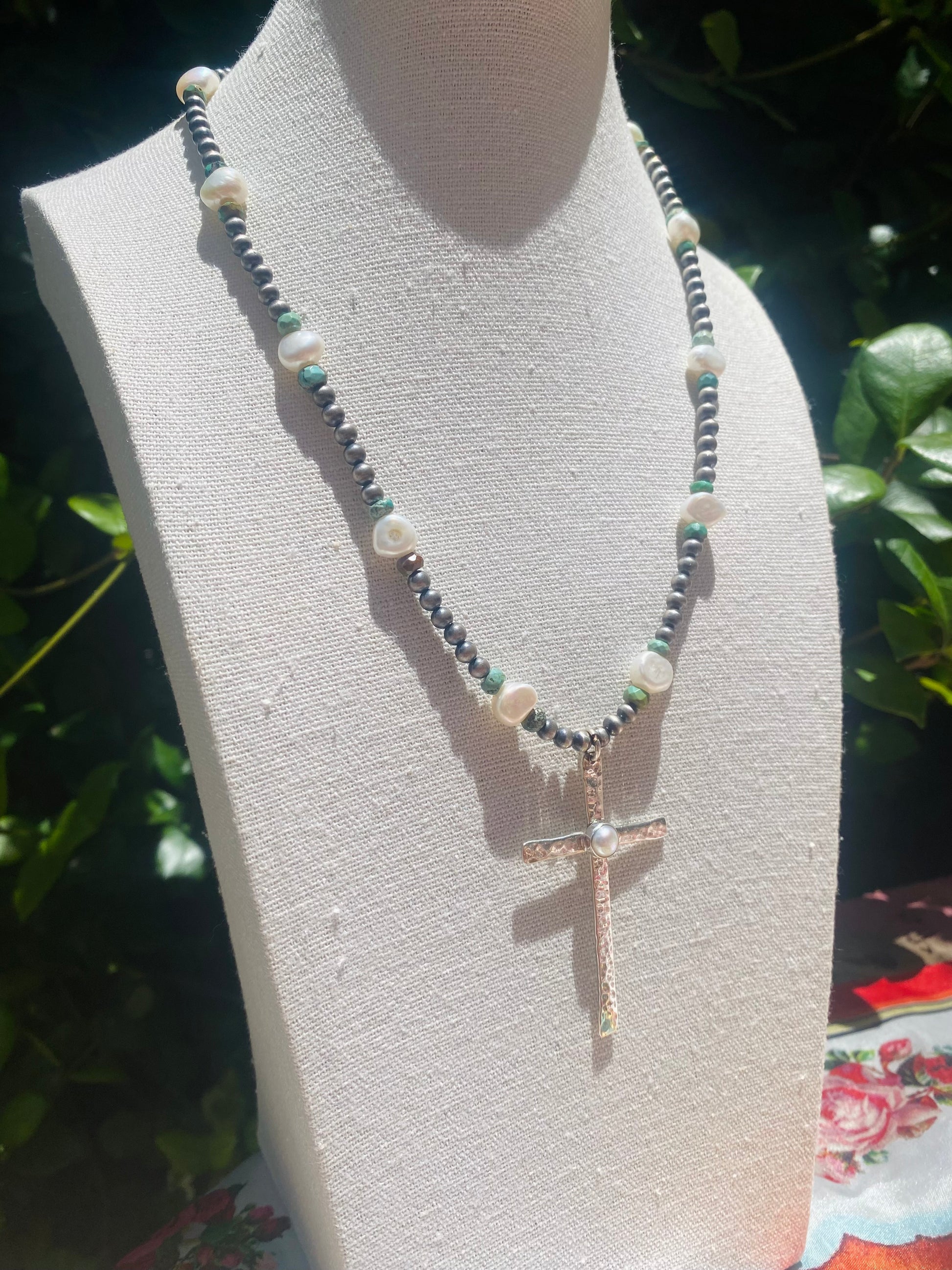 Sterling Silver Multi Gemstone Cross Necklace Turquoise & Pearl