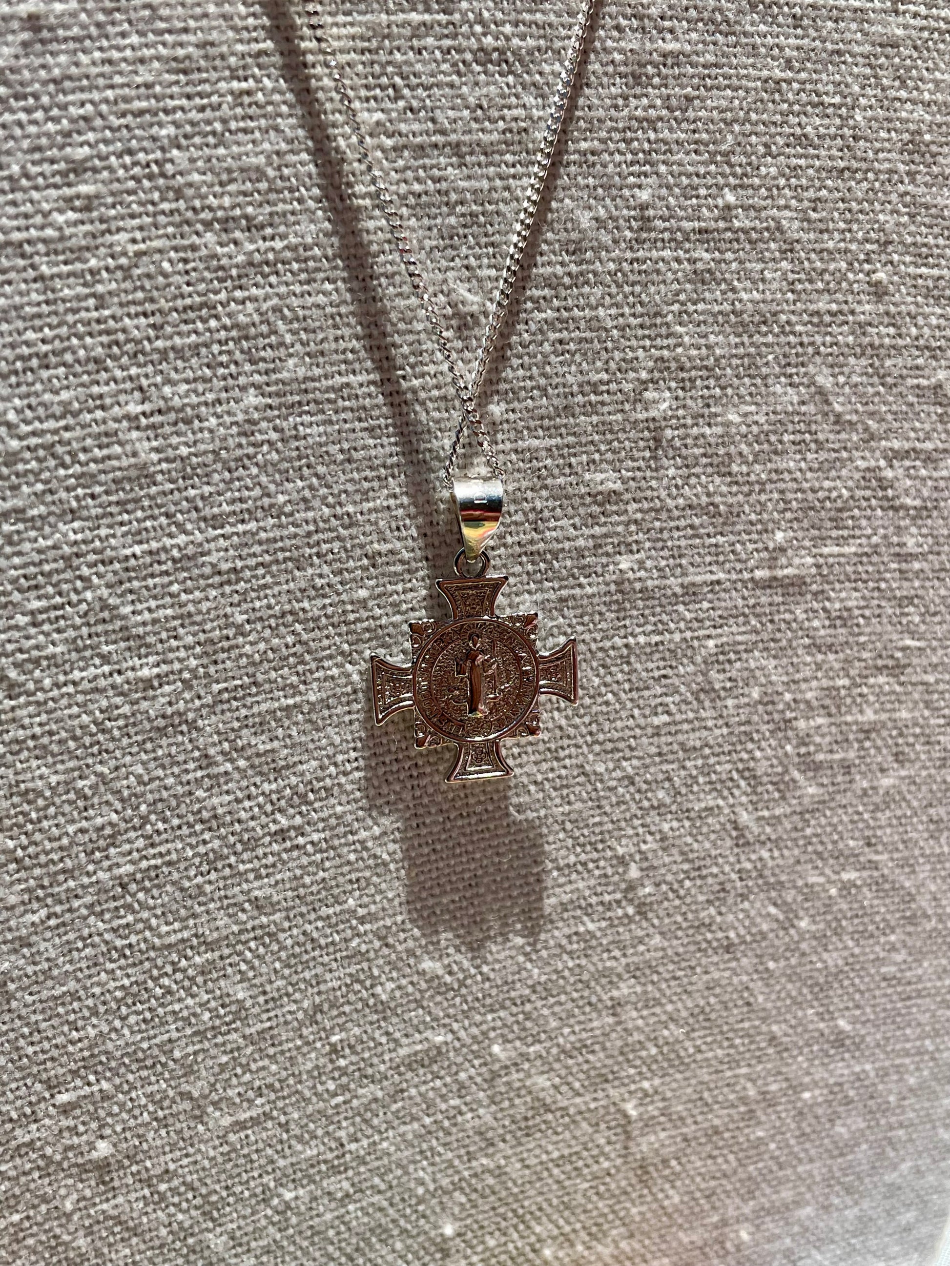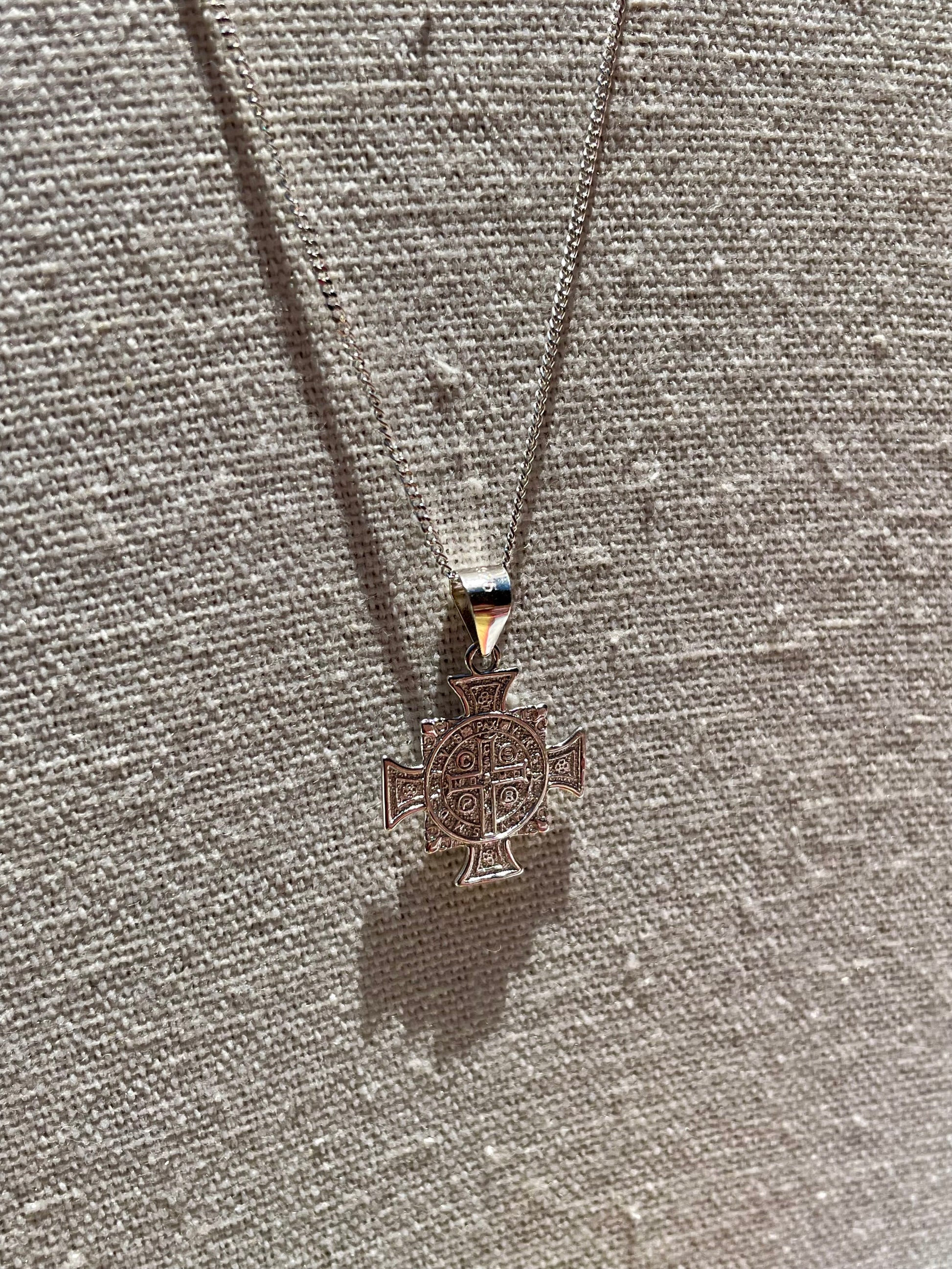 Sterling Silver Saint Benedict Small Pendant On Chain